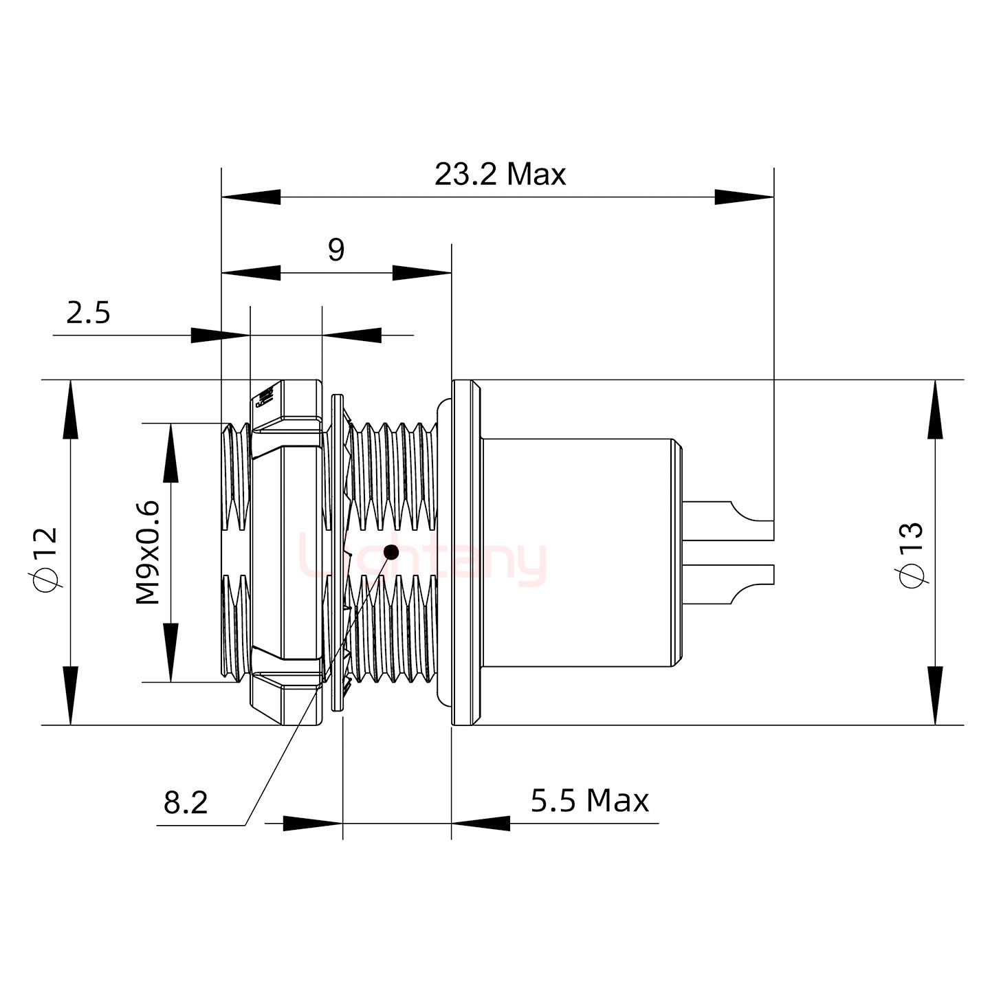 13W6A母焊線式/配螺絲螺母/射頻同軸50歐姆